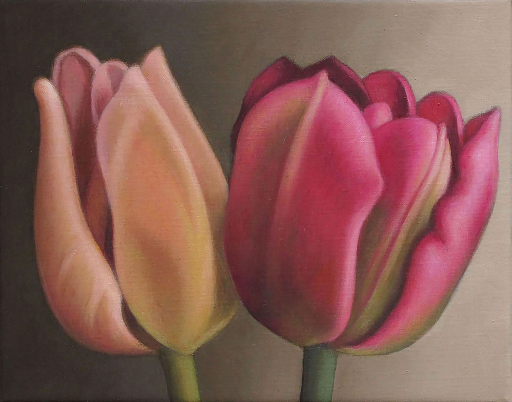 Two works combined here: ‘Green Eyes’ (38 x 38 cm) and ‘Tulipan Apeldoorn’ (50 x 70 cm). -