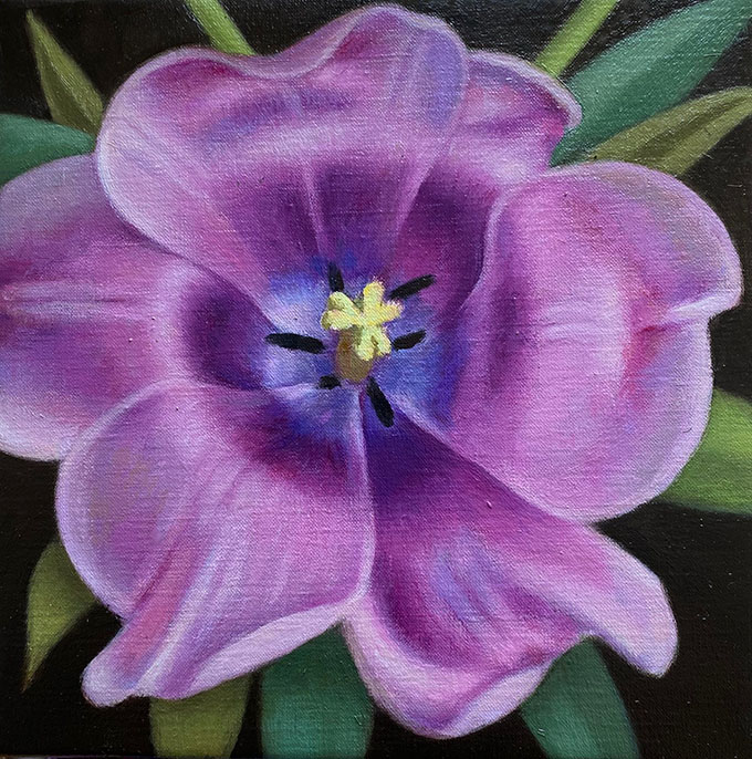 Tulipa Happy Generation. Olie på lærred. 30 x 30 cm Jeg deltager i gruppeudstillingen ‘Realistisk set’ på Davis Gallery, Bredgade 69. København, hvor jeg viser tulipanmalerier. Udstillingen åbner lørdag 20. august og varer til 15. september 2022.